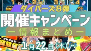 最新情報 【ダイバーズ8弾】イベント/キャンペーン情報まとめ ※1/24更新 ※1/24(土) 曜日記載の間違いと、表示ミスを修正しました。※2/3(火) 番号⑥〜の重複を修正しました。①〈開催中〉ログインボーナスキャンペーン開催期間中に1日1回、計5回の豪華ボーナスを獲得でき... 2026.01.21 最新情報称号/アクセサリー等