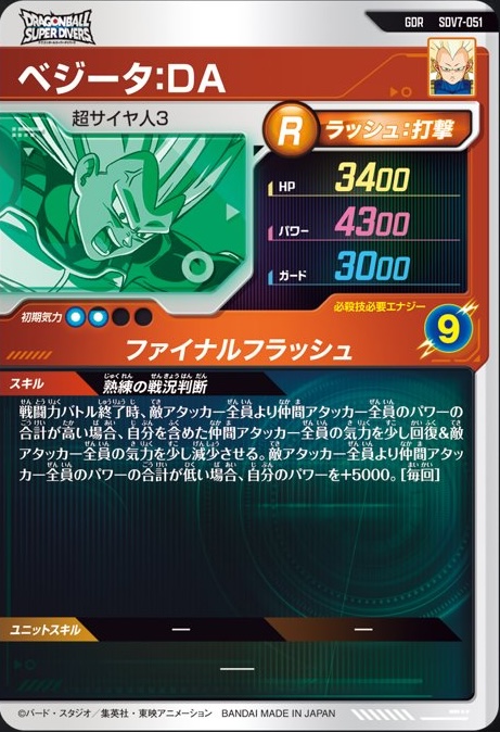 ・戦闘力バトル終了時、味方アタッカーのパワー合計値が敵アタッカーのパワー合計値を上回っていた場合、味方アタッカー全員の気力を少し回復&敵アタッカー全員の気力を少し減少。