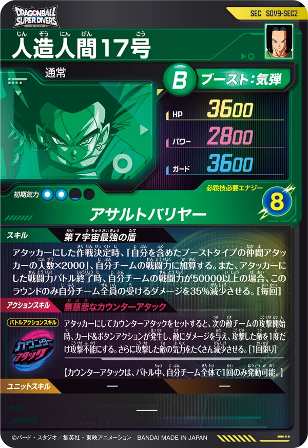 今回はまさかのシクレ枠、ダイバーズ9弾SECとして実装された人造人間17号のカード解説/考察になります。